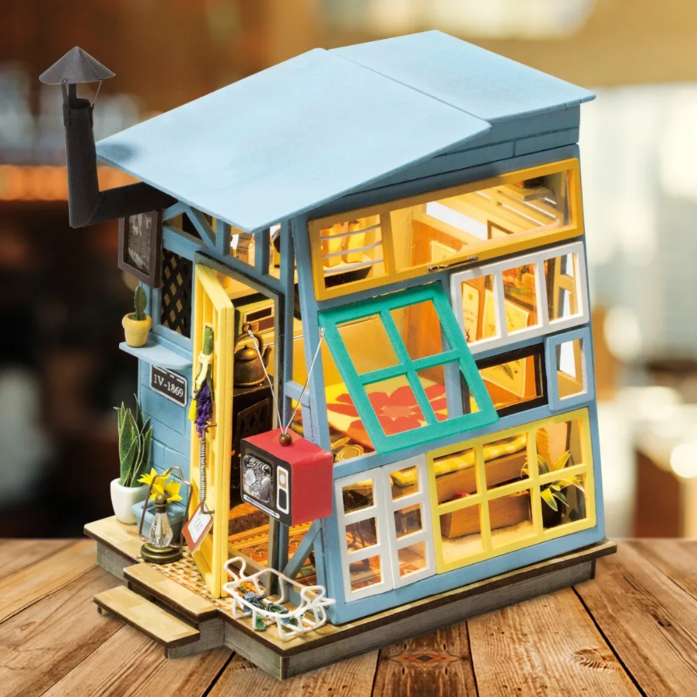 Robotime DIY Miniature Wooden Doll House with Furnitures Led Light Model Building Kits Dollhouse To