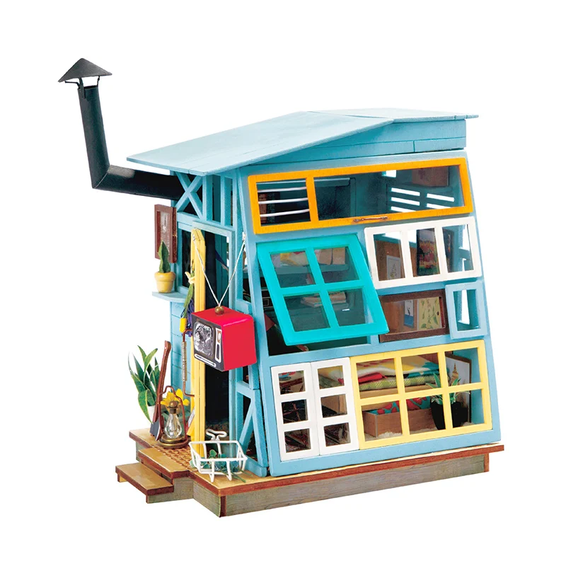 HOT Sale Robotime DIY Miniature Wooden Doll House with Furnitures Led Light Model Building Kits Dollhouse To